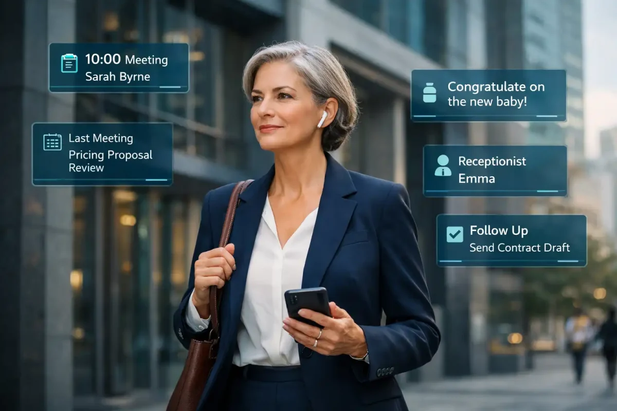 On the way to meetings, your AI assistant can brief you in real time.